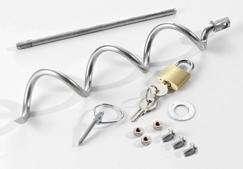 - Spiral-Bodenanker (27 cm) mit Eindrehhilfe und Sicherungsbolzen