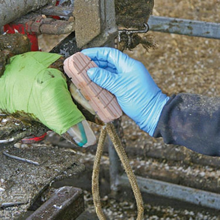 - Platzieren Sie den Klauenblock sofort auf die dafür vorbereitete, saubere, trockene und gesunde Klaue