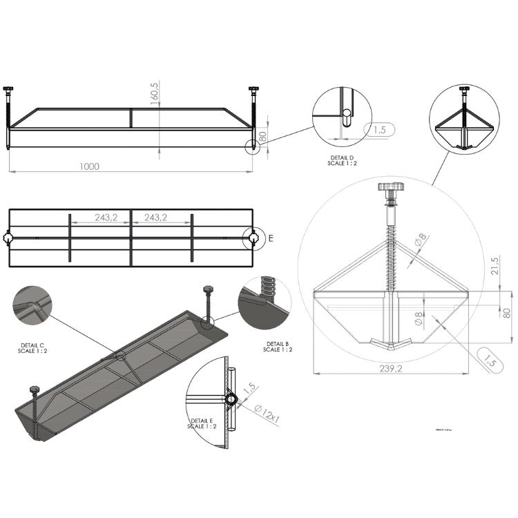 - Innenmaß oben: 1000 x 240 x 80 mm (L x B x H)